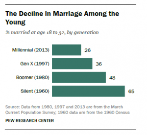 A 2013 Gallup study points out that millennials tend to get married and settle down late. Their family goals are quite delayed as they take the time to discover what they want from life.